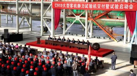 2016年4月11日,C919大型客機全機靜力試驗機(01架機)交付暨試驗啟動會在中國飛機強度研究所上海分部召開,標(biāo)志著C919大型客機靜力試驗正式啟動。C919大型客機是我國首款按照新適航標(biāo)準(zhǔn)研制的干線民用飛機,具有完全自主知識產(chǎn)權(quán)。該客機于2008年開始研制,計劃于2016年首飛。